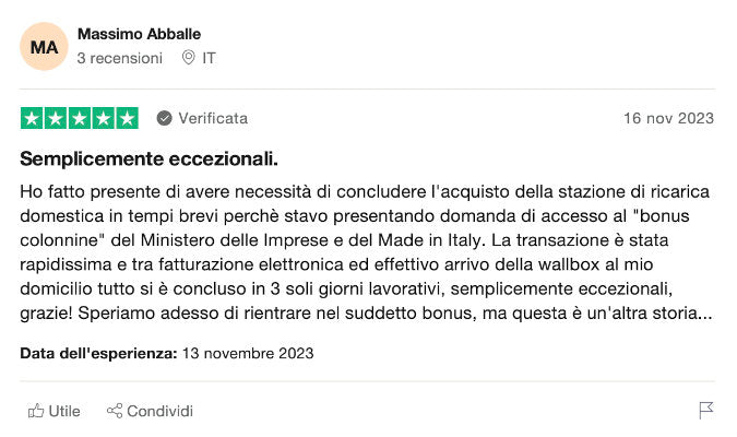 🚀 Spedizione in sole 24 ore dalla verifica di pagamento. Tutti i prezzi sono IVA 22% inclusa. Per tutte le colonnine di ricarica e i relativi accessori la spedizione GRATUITA.