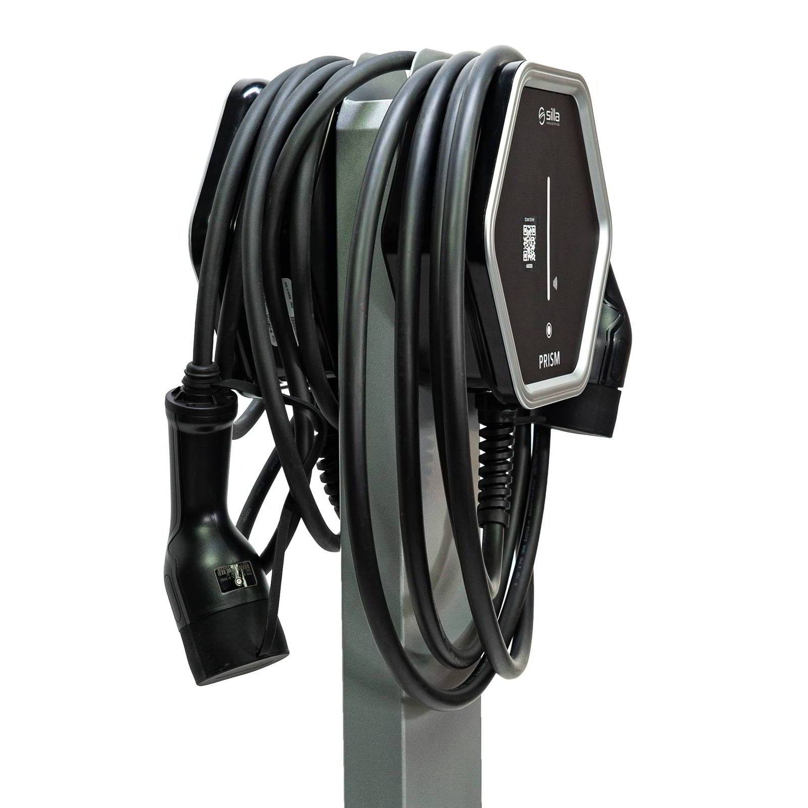 Colonnina di ricarica trifase 230/400V con 2 uscite da 22kW ciascuna con cavi da 5m, anche quando usate contemporaneamente, dotate di cavo e connettore Type 2: