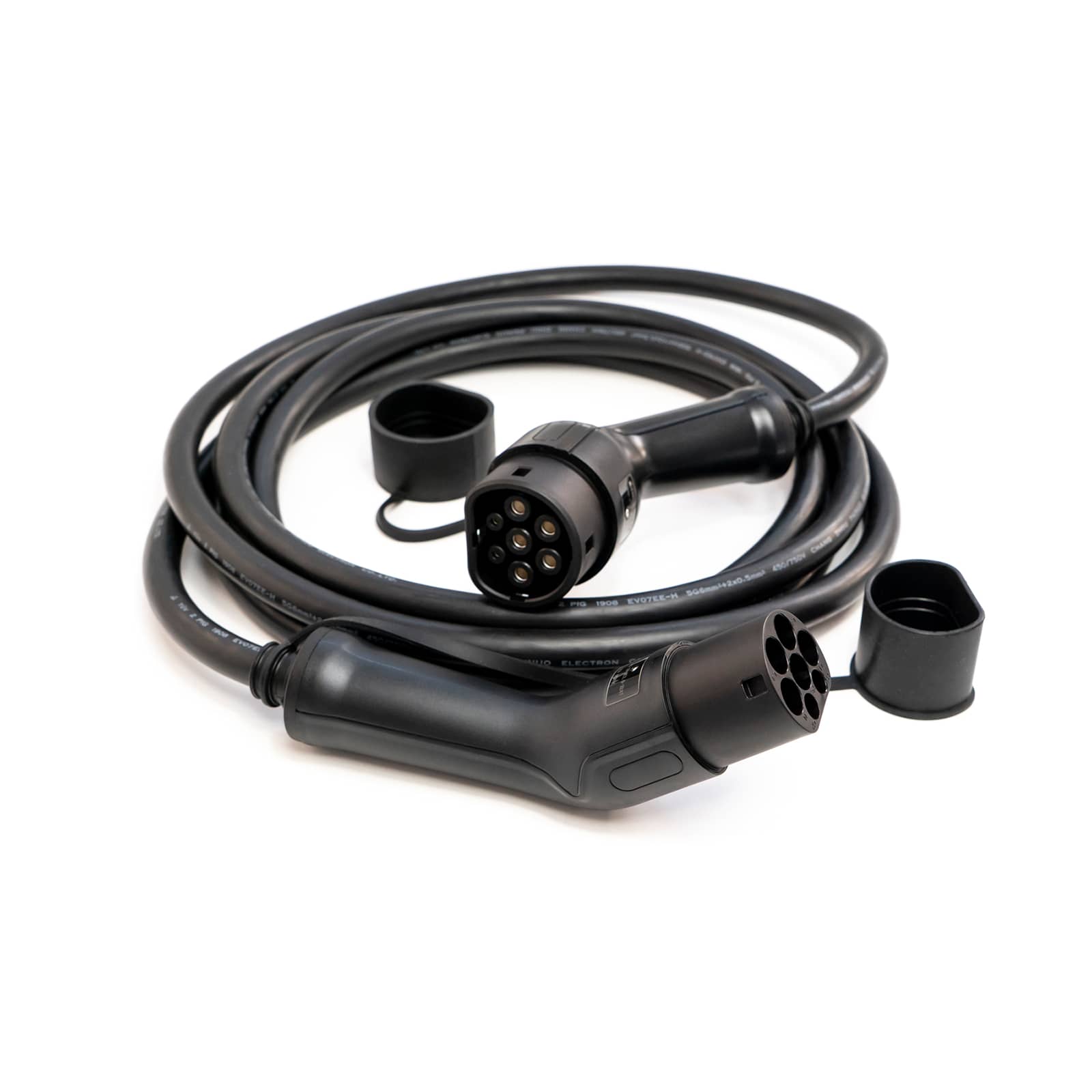 Cavo da ricarica AC da 5 metri con 2 connettori Tipo2 per la ricarica di auto elettriche alle colonnine pubbliche in CA (corrente alternata).